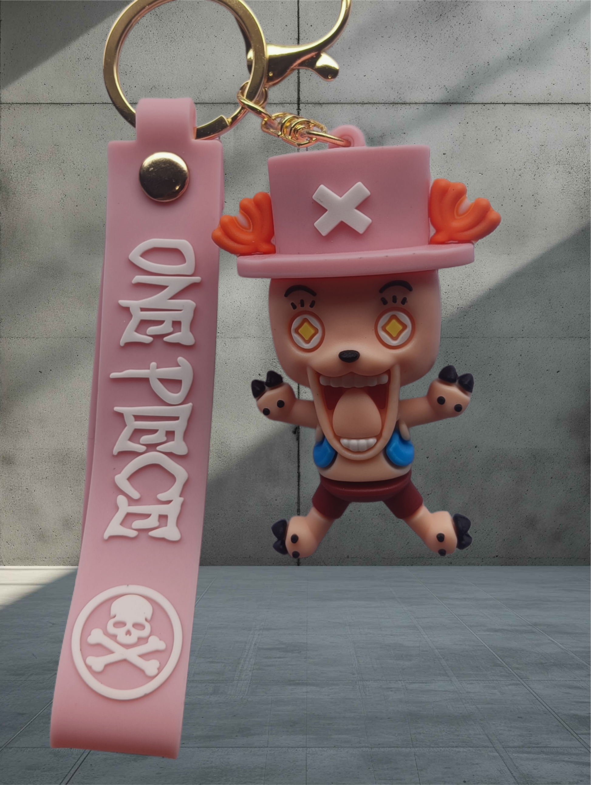 Crafted from soft, durable rubber, this keychain comes with a matching pink “ONE PIECE” tag and a strong gold keyring, making it both stylish and functional. Whether you're a die-hard One Piece fan or just love adorable collectibles, this Chopper keychain is the perfect companion for your keys, bags, or even your car mirror.